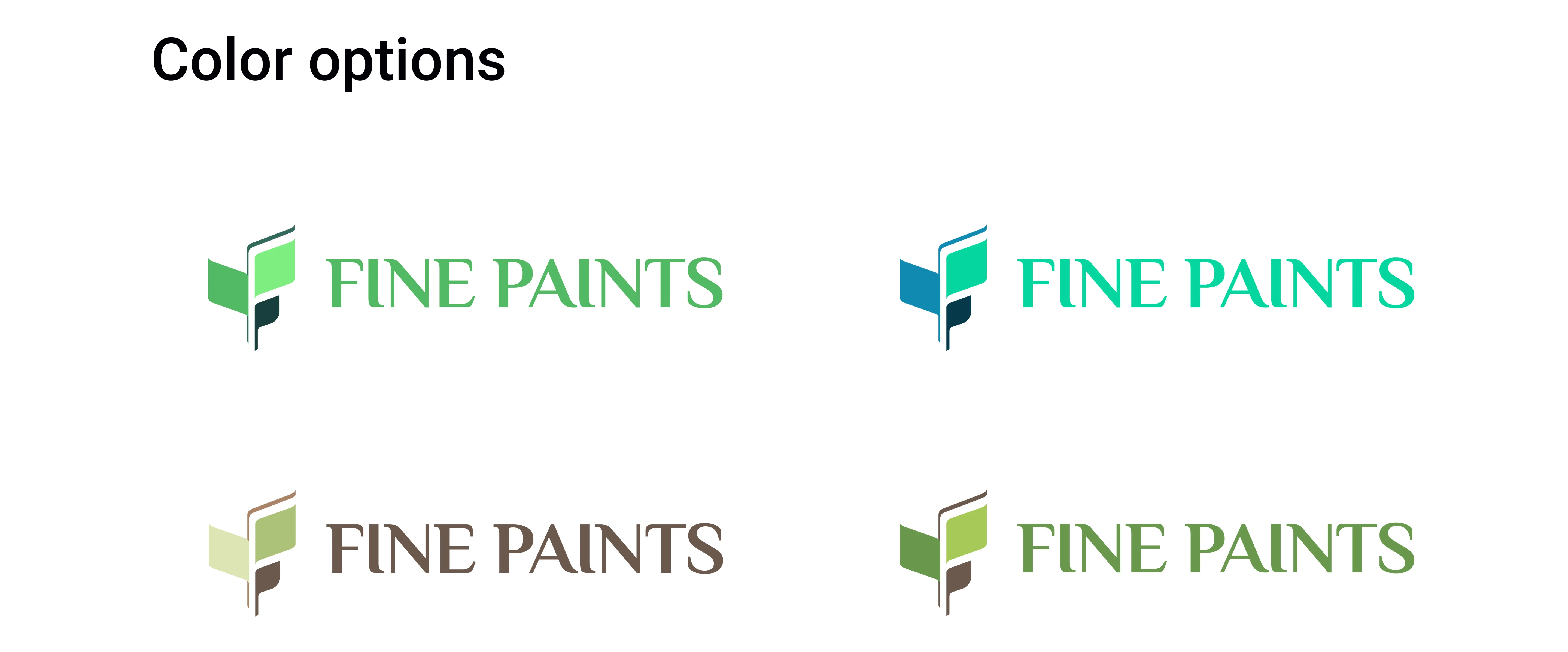 Once we identified the right shape for the Fine Paints logo sign, we started exploring color combinations Shades. Green color shades symbolizes Eco friendly product.