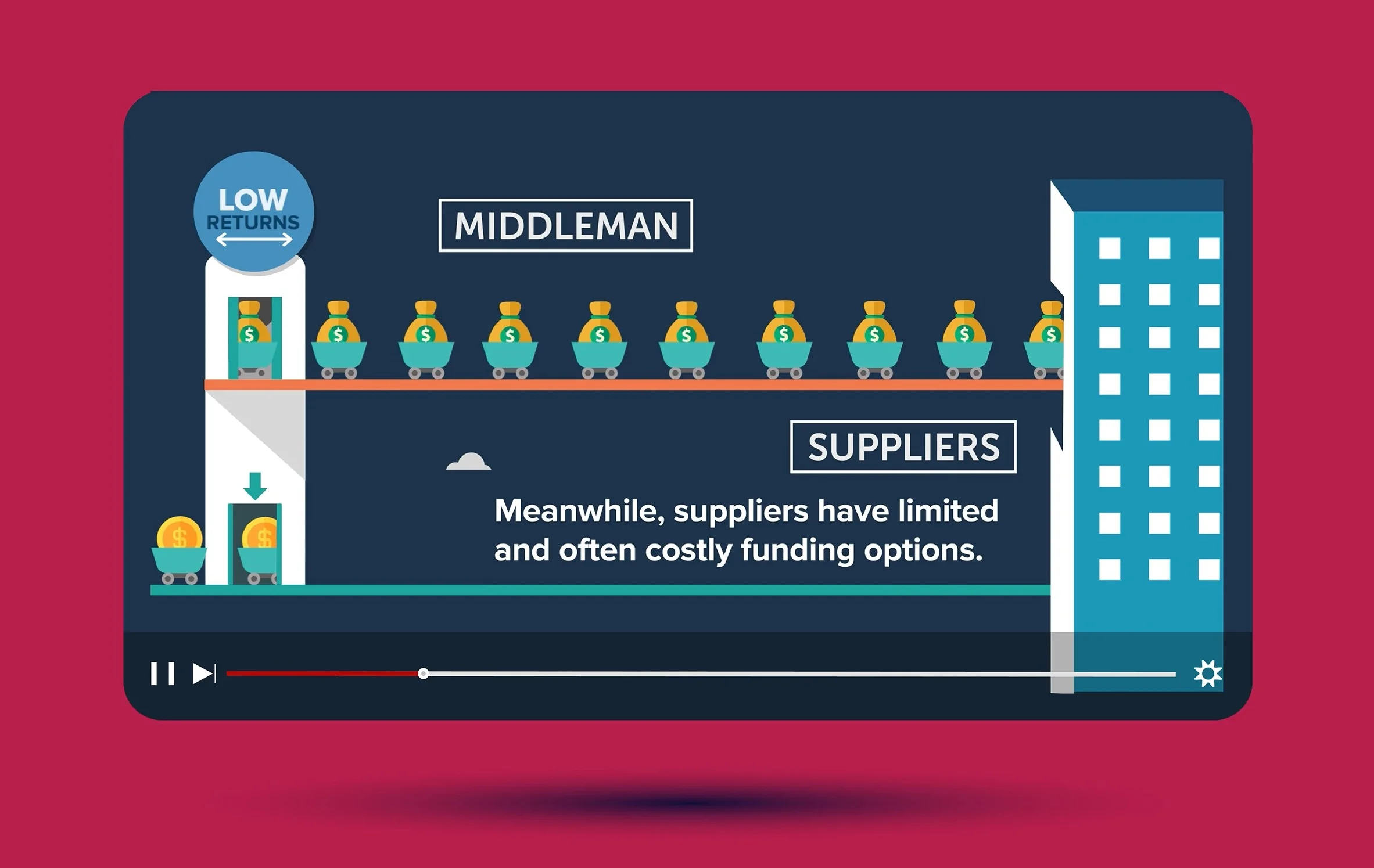To ensure clarity and impact, Palpixel analyzed core supplier challenges and structured the video around data-driven storytelling. The team designed unique and visually engaging infographics, making complex financial concepts easy to understand. The use of clean animation, intuitive transitions, and well-structured narration helped break down key insights effectively. The visuals were crafted to maintain brand consistency while ensuring maximum viewer engagement.