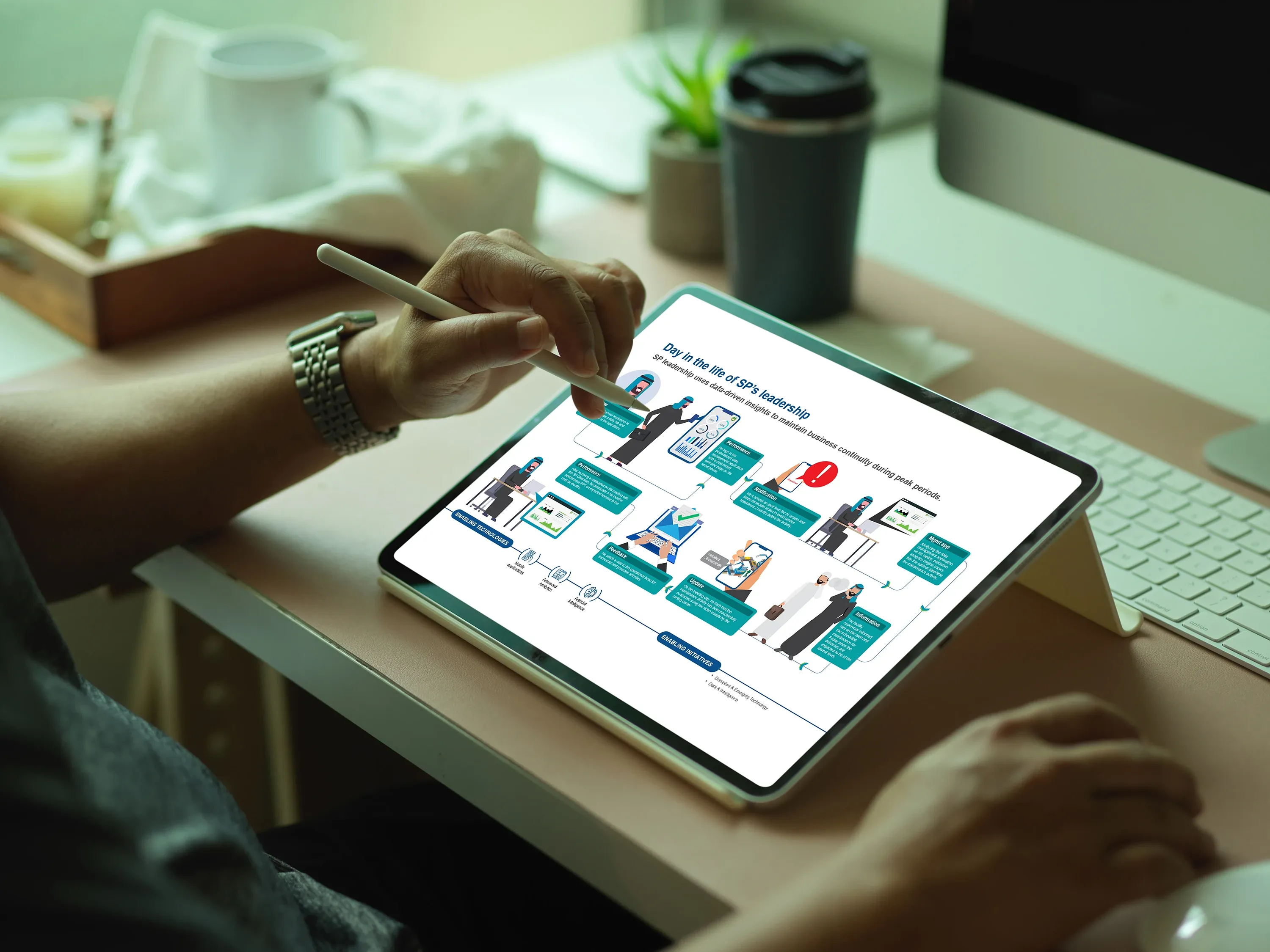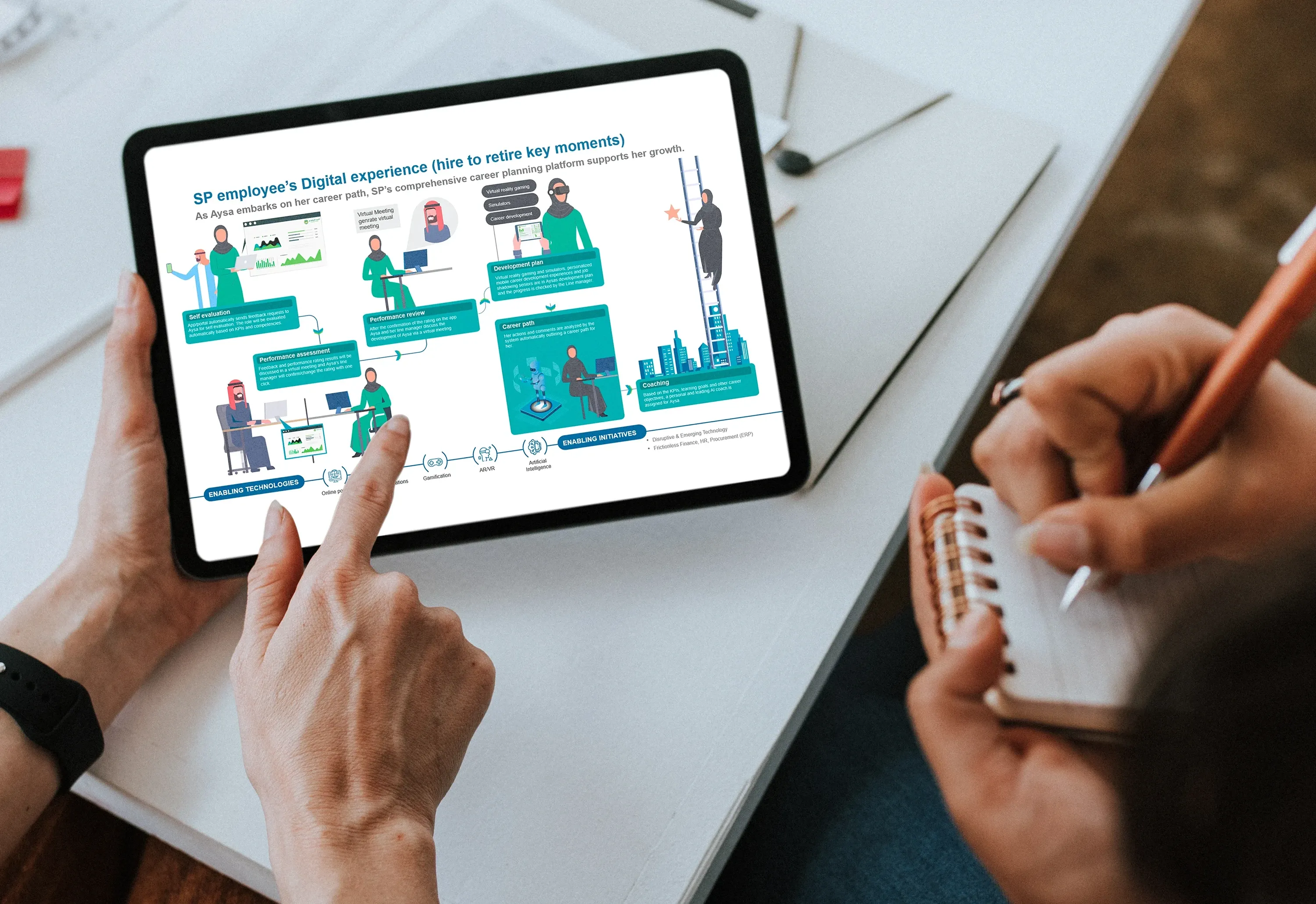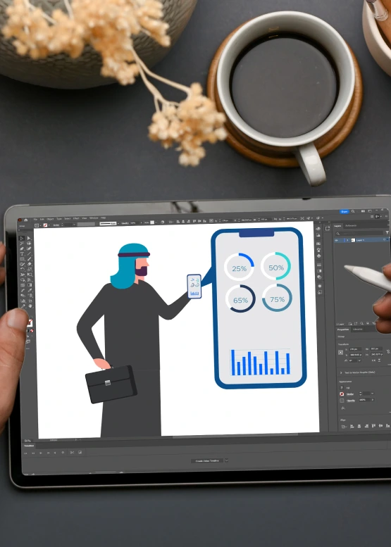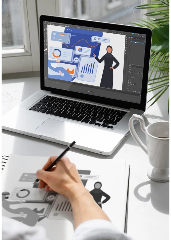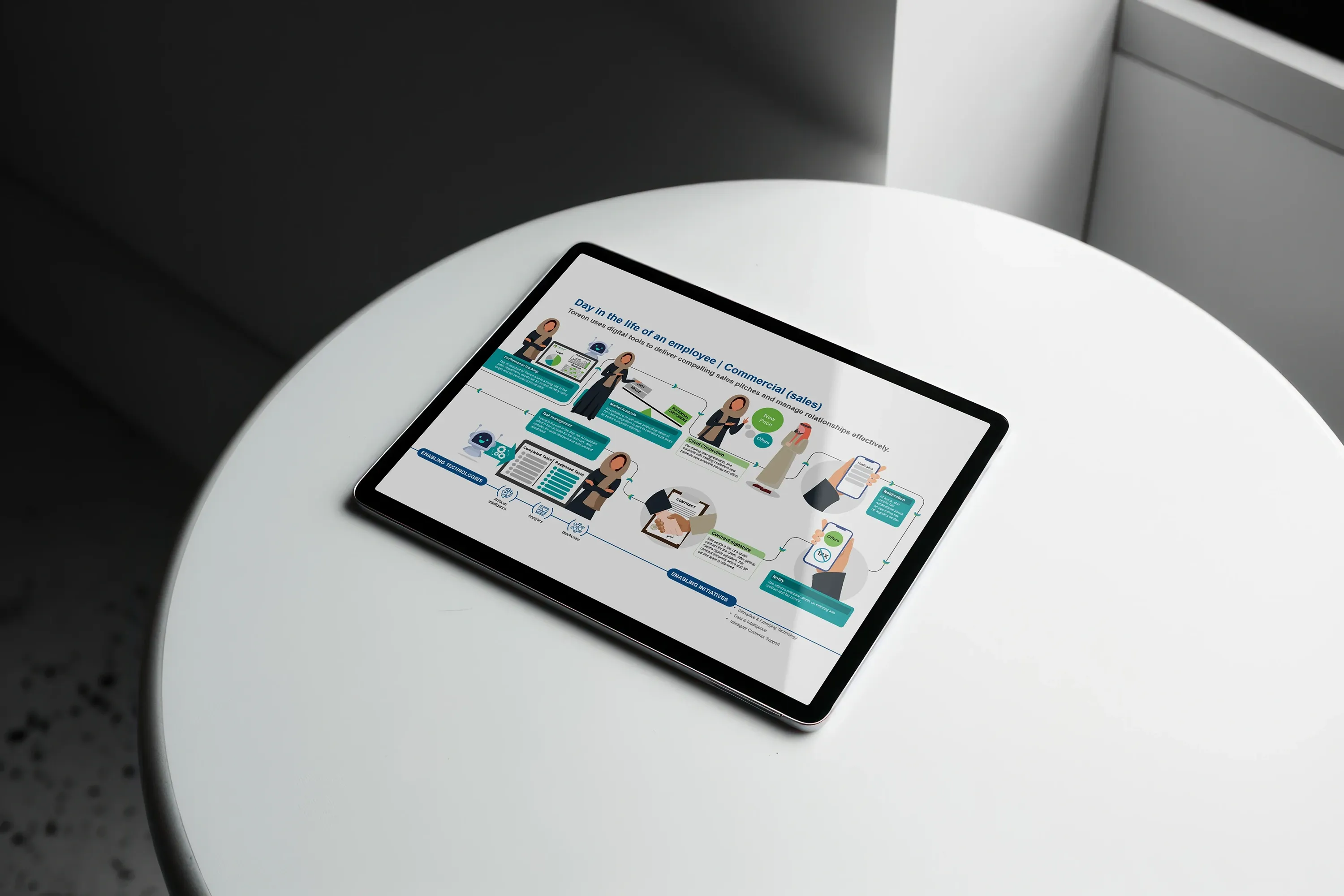 Adopt a modern and clean aesthetic that resonates with a professional audience. Utilize culturally relevant elements to ensure the illustrations align with Middle East sensibilities. Incorporate the client's branding guidelines, emphasizing colors and motifs that reflect innovation and technological advancement.