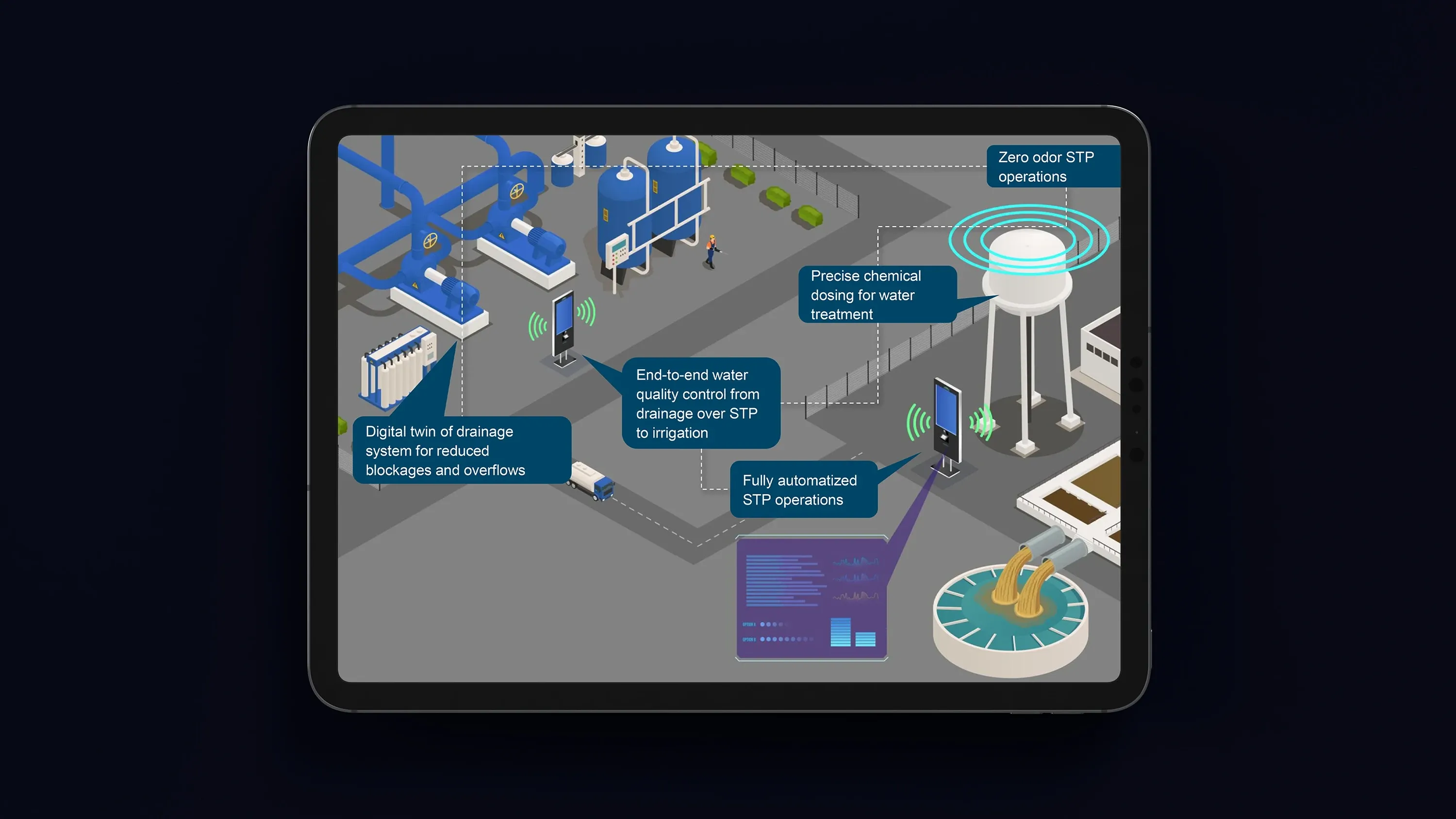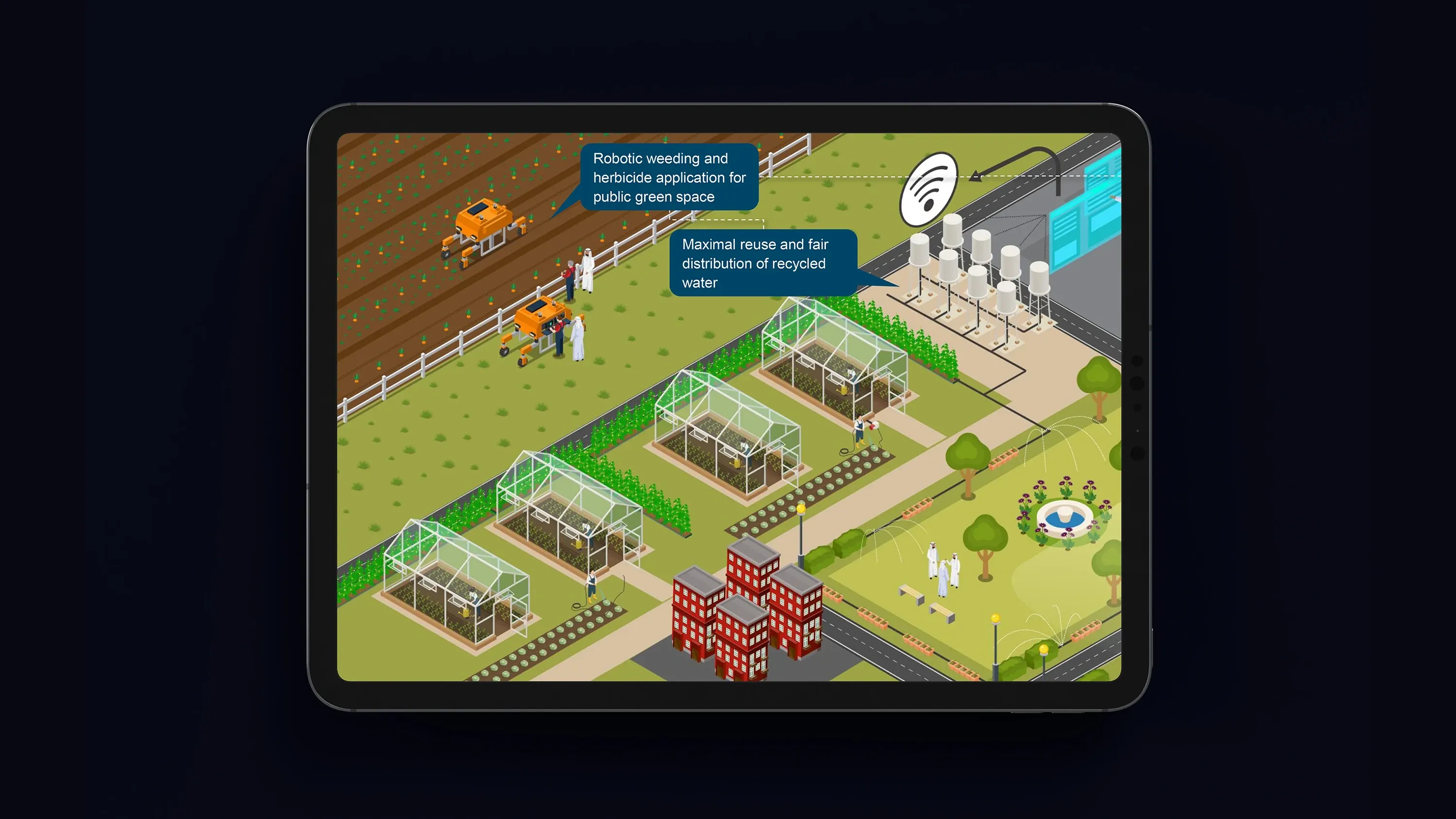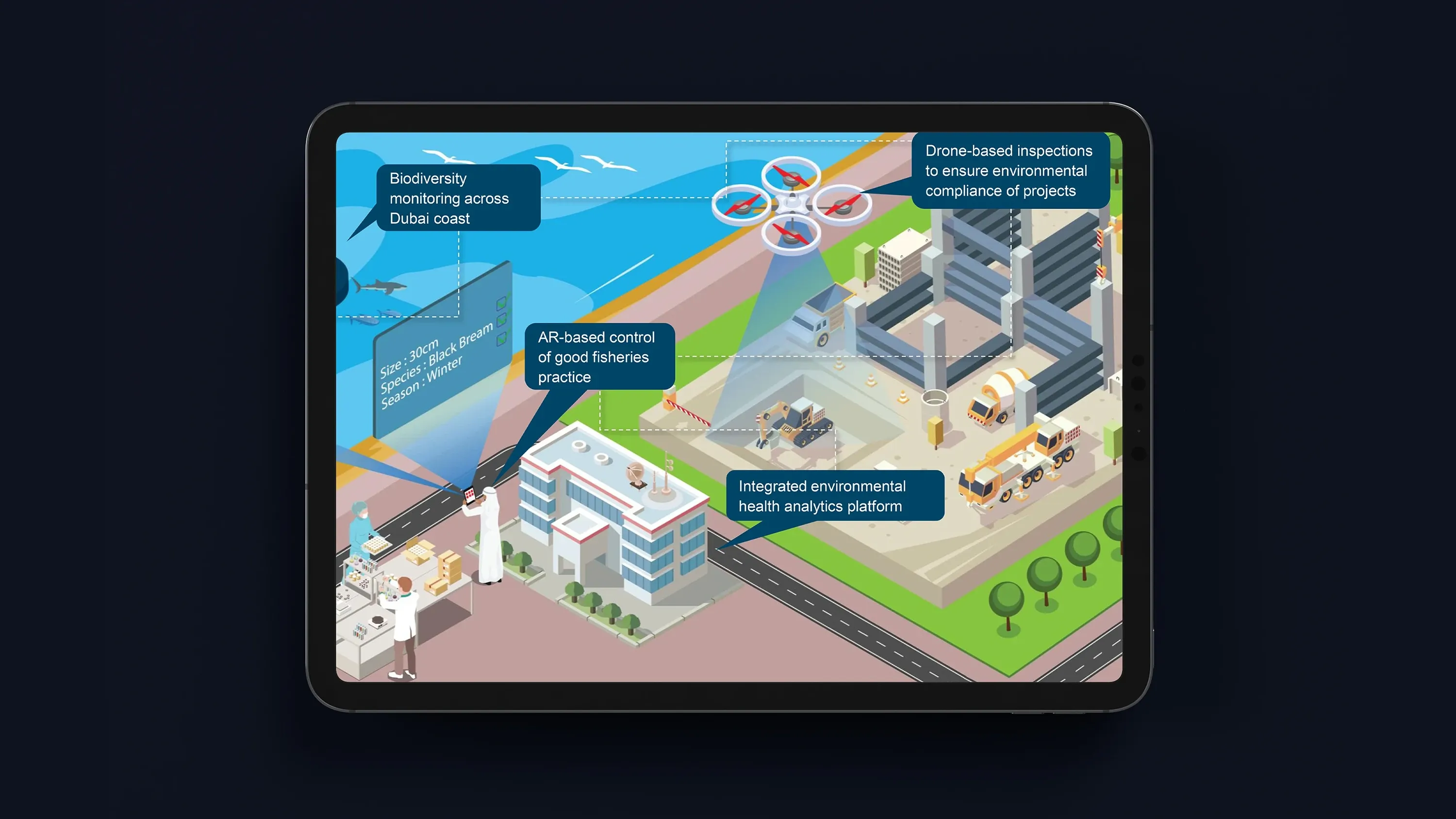 Unlike lengthy written documents, isometric visuals offer an intuitive way to absorb information quickly. Users can instantly grasp how technology transforms various sectors, from healthcare to public safety, without needing extensive explanations.