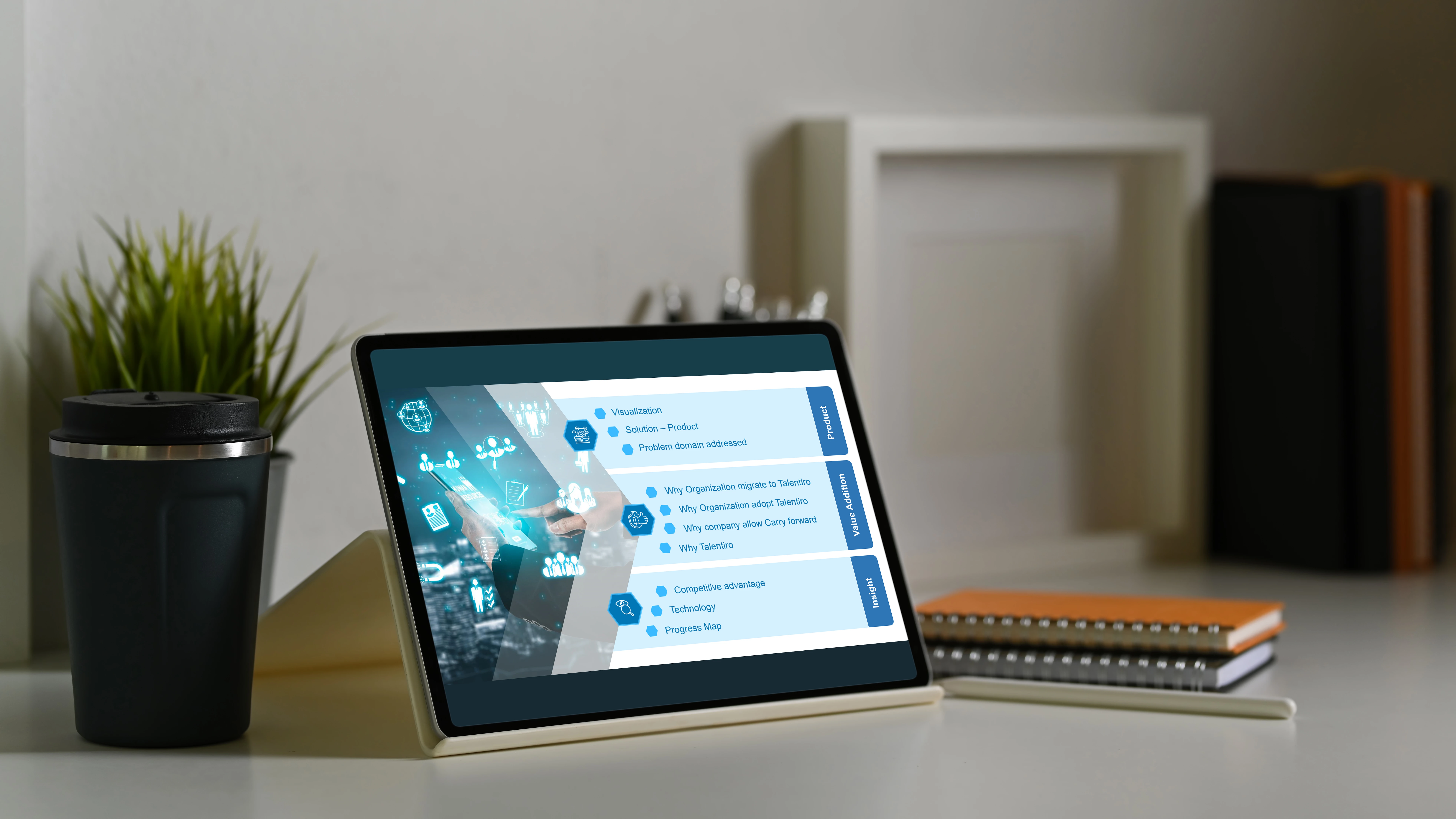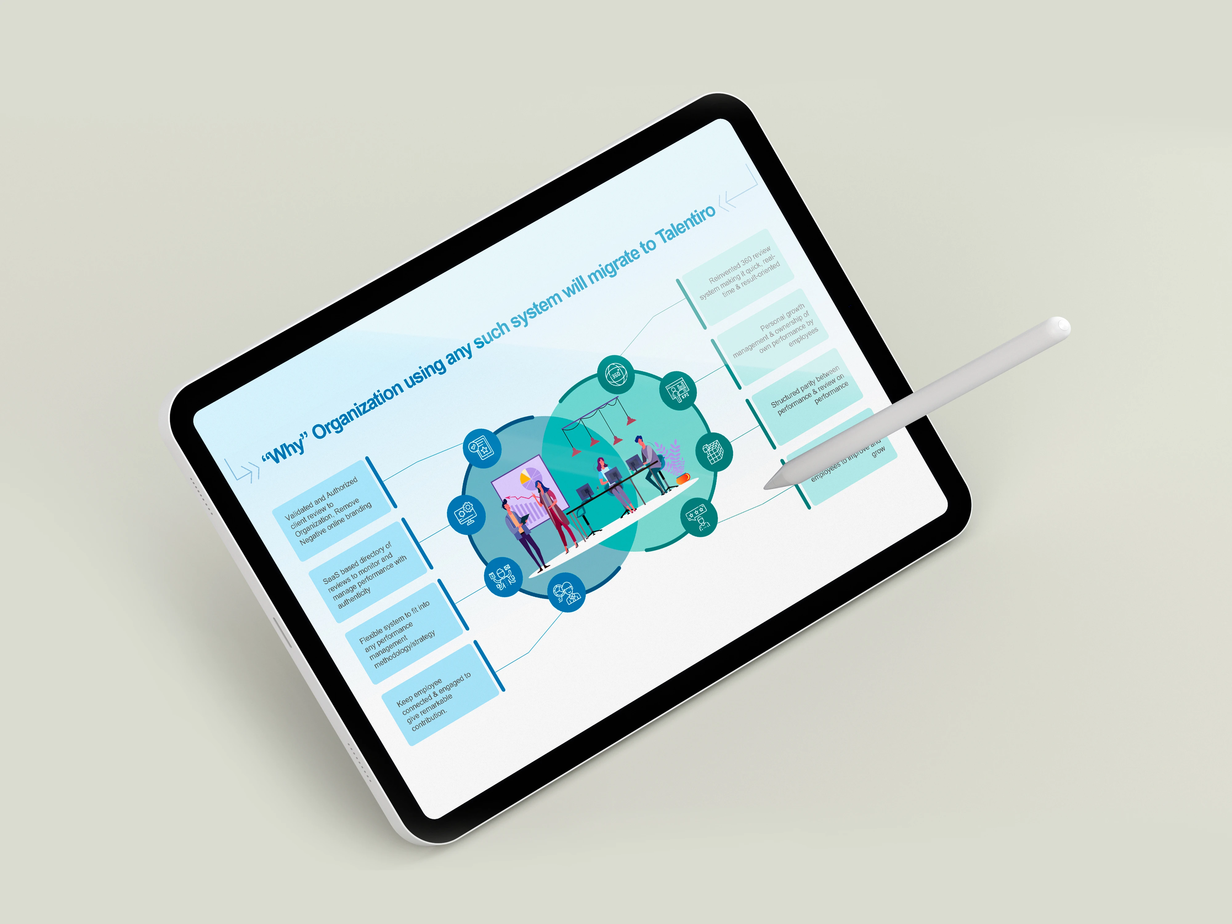 PalPixel designed a portfolio and product overview deck for the HR Online Tool, highlighting the client’s startup journey and the tool’s functionality. The presentation simplifies complex processes through intuitive and visually appealing infographics, ensuring users can easily understand the tool’s features and benefits. This approach transforms intricate concepts into clear, engaging visuals that resonate with the audience.